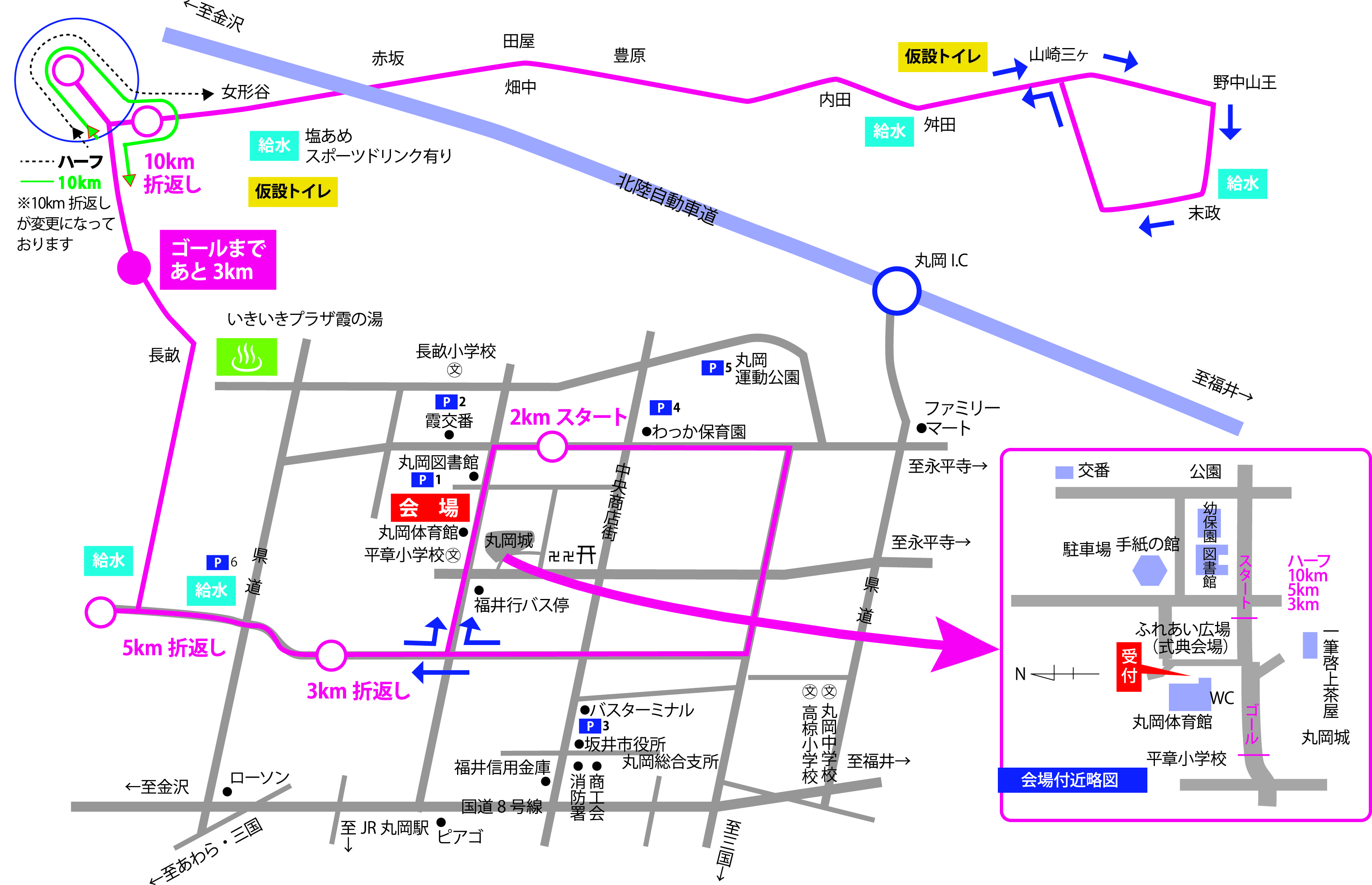 | 種目・種別 | ハーフ : 18才以上39才以下男子、40才以上男子、50才以上男子、 18才以上一般女子 10km : 15才(高校生)29才以下男子、30才以上男子、40才以上男子、50才以上男子、 60才以上男子、18才以上一般女子) 5km : 15才(高校生)29才以下男子、30才以上男子、40才以上男子、50才以上男子、 60才以上男子、15才(高校生)以上39才以下女子、 40才以上女子、中学男子2・3年 3km : 中学男子1年、中学女子、小学男子 2km : 小学女子、ファミリー1年、ファミリー2年、ファミリー3年、ファミリー4年、 ニコニコランニング(一般)、ニコニコランニング(小中学生)項 |