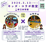 | 人気の子ども教室2つを30分ずつ体験!! 今回は、「キッズバランスボール」と「体軸体操」のコラボです。 どちらもバランス能力・体幹を鍛え、身体感覚を高める効果がある大注目の2教室。 春からの習い事におススメの教室です。 【日 程】3月13日(金)17:00~18:10 【会 場】春江体育館 【対 象】年長~小学5年生(次年度の1~6年生) 【参加費】500円 【申込み】申込フォームはコチラから 【問合せ】春江体育館 ☎51-4242(平日9-17時) |